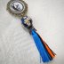 ※2025.03.16.タッセルの色を明るめの青へ変更しました。 刀剣男士のイメージカラーのタッセルを手作りしたバッグチャームです。 素材はレジン・合金・タッセルはレーヨンです。 紋は表面のみで裏はありません。 大きさはチェーン含め15~16cm程度です。 【注意】 1.ハンドメイド作品のため、工業製品のような強度はございません。 2.タッセル部分は水に弱いので、雨天のご使用はおやめください。 また、使っているうちに糸先がほつれてきますので 毎日の通勤通学などでのご使用はお勧めできません。 3.ハンドメイド作品のため、どの作品も全く同じに作ることはできません。 見本写真とはタッセルの雰囲気 (2~3色を組み合わせてタッセルを作るため 糸の巻き具合によって色の出方が異なります。)が 異なる場合がございます。 4.撮影の際、ライトボックスの照明がレジン部分に映りこんでいます。 列状の白点はレジンの汚れではございません。