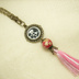 刀剣男士のイメージカラーのタッセルを手作りしたバッグチャームです。 素材はレジン・合金・タッセルはレーヨンです。 紋は表面のみで裏はありません。 大きさはチェーン含め15~16cm程度です。 【注意】 1.ハンドメイド作品のため、工業製品のような強度はございません。 2.タッセル部分は水に弱いので、雨天のご使用はおやめください。 また、使っているうちに糸先がほつれてきますので 毎日の通勤通学などでのご使用はお勧めできません。 3.ハンドメイド作品のため、どの作品も全く同じに作ることはできません。 見本写真とはタッセルの雰囲気 (2~3色を組み合わせてタッセルを作るため 糸の巻き具合によって色の出方が異なります。)が 異なる場合がございます。 4.撮影の際、ライトボックスの照明がレジン部分に映りこんでいます。 列状の白点はレジンの汚れではございません。