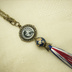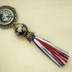 刀剣男士のイメージカラーのタッセルを手作りしたバッグチャームです。 素材はレジン・合金・タッセルはレーヨンです。 紋は表面のみで裏はありません。 大きさはチェーン含め15~16cm程度です。 【注意】 1.ハンドメイド作品のため、工業製品のような強度はございません。 2.タッセル部分は水に弱いので、雨天のご使用はおやめください。 また、使っているうちに糸先がほつれてきますので 毎日の通勤通学などでのご使用はお勧めできません。 3.ハンドメイド作品のため、どの作品も全く同じに作ることはできません。 見本写真とはタッセルの雰囲気 (2~3色を組み合わせてタッセルを作るため 糸の巻き具合によって色の出方が異なります。)が 異なる場合がございます。 4.撮影の際、ライトボックスの照明がレジン部分に映りこんでいます。 列状の白点はレジンの汚れではございません。