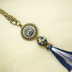 刀剣男士のイメージカラーのタッセルを手作りしたバッグチャームです。 素材はレジン・合金・タッセルはレーヨンです。 紋は表面のみで裏はありません。 大きさはチェーン含め15~16cm程度です。 【注意】 1.ハンドメイド作品のため、工業製品のような強度はございません。 2.タッセル部分は水に弱いので、雨天のご使用はおやめください。 また、使っているうちに糸先がほつれてきますので 毎日の通勤通学などでのご使用はお勧めできません。 3.ハンドメイド作品のため、どの作品も全く同じに作ることはできません。 見本写真とはタッセルの雰囲気 (2~3色を組み合わせてタッセルを作るため 糸の巻き具合によって色の出方が異なります。)が 異なる場合がございます。 4.撮影の際、ライトボックスの照明がレジン部分に映りこんでいます。 列状の白点はレジンの汚れではございません。