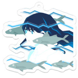 アクリルキーホルダー - 50 x 50 (mm)おさかなです 波に乗っています