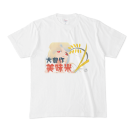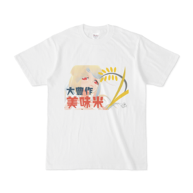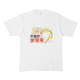 イチナナマイイベントにてトートバッグのデザインに起用した大豊作のTシャツバージョンになります!みんなでこめちゃんと一緒に大豊作を願いましょう! この商品はpixivFACTORYで作られた商品です。サンプル画像は完成イメージのため、実物と異なる場合があります。