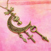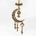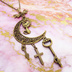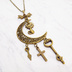 アンティークゴールド 猫とアラベスク調の透かし模様の入った三日月のネックレス リボン 鍵 ロザリオ 時計の針 長さ調整可