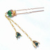 蓮花の2本足簪 クラックグリーンクリスタル濃色(クラック水晶)ゴールドカラー