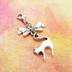 マスクチャーム アンティークシルバー(銀古美色)の跳ね猫とリボンの大人可愛いチャーム キーホルダー