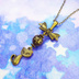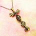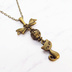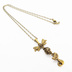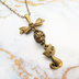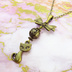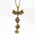 アンティークカラーの猫とリボンと透かしメタルビーズのチャームのネックレス