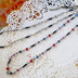 レトロと華奢の両立。 竹ビーズ、チェコラウンドとFP、クリスタライズを華奢に繋げて。 ロング・2連・3連と色んな使い方が出来ます。 ぐるぐる巻けばブレスレットやアンクレットとしても。 銀古美金具を使用、 落ち着いた色味にしているので男の子ドールにもオススメです。 ゴールドカラーの新色も仲間入り! シンプルなワンピースにも、 ちょっとエキゾチックなドレスにも。 水着と合わせるのもセクシーでいいですね。 幼SD~SD17位迄 約30cm+アジャスター 2分竹ビーズ(日本製ガラス):6mm ラウンド(チェコガラス):3mm FP(チェコガラス):3mm クリスタライズ(クリスタルガラス)5328:3mm アジャスターの先にも同色の3mmビーズを使用。 金具:銀古美カラー/ゴールドカラー(メッキ) ※ビーズのカラーのオーダーや金具カラー変更製作可能です。 (例:ピンク系でゴールド金具や、濃い青系でシルバー金具等) ご希望の場合は備考欄にご記入頂くかお問い合わせ下さい。 ※受注製作となります。 「在庫切れ」・「お問い合わせ下さい」と表示されている商品については、 材料の在庫次第で作製可能のものもございます。 お気軽にお問い合わせ下さい。