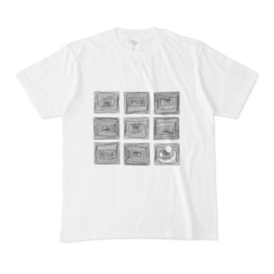Tシャツ - XL - 白四角いグルグルと歪なニコニコがデザインされた洋服です。少し不気味で少し可愛らしいグルニコを生活の中におひとつどうぞ。 (この商品はpixivFACTORYで作られた商品です。サンプル画像は完成イメージのため、実物と異なる場合があります。)