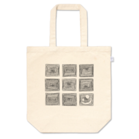 トートバッグ - M - プリント面積中四角いグルグルと歪なニコニコがデザインされたトートバッグです。少し不気味で少し可愛らしいグルニコを生活の中におひとつどうぞ。 (この商品はpixivFACTORYで作られた商品です。サンプル画像は完成イメージのため、実物と異なる場合があります。)