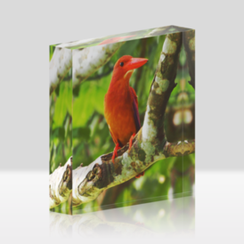 アクリルブロック - 100x100mm沖縄石垣島で撮影したリュウキュウアカショウビンです、カワセミの仲間で、魚を取るための大きなくちばしと鮮やかなオレンジの羽が特徴の美しい鳥です。 この商品はpixivFACTORYで作られた商品です。サンプル画像は完成イメージのため、実物と異なる場合があります。