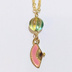 秦こころの快活な性格をイメージして作ったハンドメイドのチャームネックレスです。 桃色の扇子で派手なピンク色の髪と能楽を、スジの入ったツートンカラーのチェコビーズで上着と特徴的な愛らしいスカートを表現しました。扇子は両面にピンク色のエポキシ樹脂がついております。またビーズは2つのカラーが入っているので角度によって色の見え方が変わります。明るくて存在感のあるネックレスに仕上がりました。 扇子チャームの素材はメッキされた亜鉛合金とエポキシ樹脂。エポにわずかにムラや凹みがある場合がございます。素材の製造工程で発生する個体差ですのでご了承くださいませ。 ビーズはチェコ製のガラスビーズ。 チェーンは丹銅素材でその他の部分は真鍮。金色にメッキされています。長さは約55㎝。アジャスターで約60㎝まで調節できます。