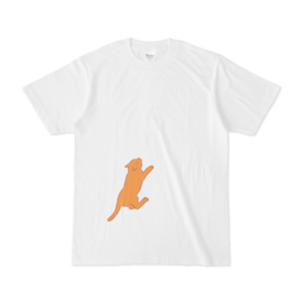 よじ登ろうとしているネコさんのTシャツ♪(オレンジvar.)【猫グッズ】orange cat