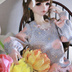 ・お着物の正絹(シルクの)反物からワンピースを作りました。シルク生地特有のハリがあり、パニエを履かなくてもふんわり広がります。 ・ふんわりさせるため全体的にゆったりとしたデザインにしています。お袖もボリュームが出るように工夫しました。 ・生地の美しさを味わっていただきたく、装飾は控えめに。胸元にはパールのビーズやスワロ、りぼん、レースでポイントを付けました。 ・背中も綺麗に開きます。スナップ2個留め。 ・身頃に白シルクの裏地付き。水濡れにはご注意ください!