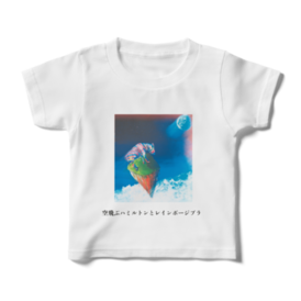 キッズTシャツ - 100cm - 正面この商品はpixivFACTORYで作られた商品です。サンプル画像は完成イメージのため、実物と異なる場合があります。 商品名 キッズTシャツ100㎝ 空飛ぶハミルン島とレインボージブラ 夢を叶える虹色のしまうま 空飛ぶハミルン島に乗って世界中を旅するレインボージブラ そんなお話 熊本アーティスト 主に動物 依頼あれば壁画を描いたりする 展示会や似顔絵イベント(見習い)のため出没することがある