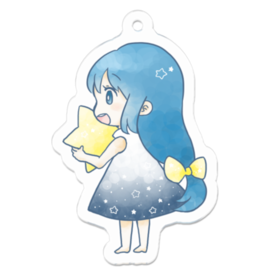 夜空をイメージした女の子のアクリルキーホルダーです。 この商品はpixivFACTORYで作られた商品です。サンプル画像は完成イメージのため、実物と異なる場合があります。
