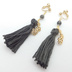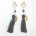 ブラックルチルクォーツ・桜・グレータッセルイヤリング