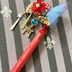 【春の髪飾り】銀花 紅 ドールサイズの髪飾りを制作いたしました。 ドールに向かって右側ウィッグへクリップで留めて頂ける様に制作しております。 お品物は、髪飾り1点のみです。お人形が写っているお写真は着用例(MDD)となりますので、サイズ感等をご参考ください。(ドール本体や、撮影用に使用している小物類は付属致しませんのでご注意ください) ◆使用素材等◆ 金属、シフォンパーツ、ガラスやタッセル、プラスチック等色々です。難黄変のレジンや、ニカン・丸カン等で各パーツの接着を行っております。 金属・レジンアレルギーの方はご注意ください。 できるだけパーツが外れたりしないよう、ニカンを中心に使用し、マルカン使用部分で、外れる不安がある箇所に関してはレジンにて隙間をふさいでおりますが、華奢なパーツ類も使用しておりますため、優しくお取り扱いいただけますようお願い致します。 金属パーツに関してですが、海外製品も使用しており、なるべく綺麗なものを選んで使用しておりますが、どうしても元々少々のスレや小傷などがあるパーツもございます。お気になされる方はご購入をご遠慮くださいますようお願い致します。 ◆ドール着用時のご注意◆ 必ず、ウィッグの上からのご使用をお願い致します。金属パーツを使用しています為、お顔にパーツが当たらない様装着してあげて下さい。 色移りは湿度や条件によって変わってきますので、長時間の装着したまま・・は推奨できません。様子をご覧いただきご使用をお願い致します。 (念の為、特にタッセル部分はお顔など本体に直接触れない様ににご使用下さい) 大変すみませんが、色移りや、パーツこすりでのメイクの削れ等での責任は当方では負えませんのでご了承ください。 ◆その他◆ 丁寧に一点・一点手作り致しましたが、手作業です。プロの作品のようなクオリティーはございませんので、ハンドメイドへのご理解をいただき、雰囲気を気に入って下さった方のご購入をお待ちしております。 ◆発送に関しまして◆ 少々お待たせいたしますが、都合により発送まで最大で、一週間程度頂戴しますが、ご了承ください。