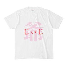 この商品はpixivFACTORYで作られた商品です。 サンプル画像は完成イメージのため、実物と異なる場合があります。 "爺"の字の上に"じぃじ"とひらがなが入った「爺 - じぃじ」T。 1700円です。 カラーは黒、赤、青、緑、橙、紫の6色。 サイズはS、M、L、XLの4サイズ。 「婆 - ばぁば」T、「父 - ちち」T 、「母 - はは」T、「子 - こ」 Tもあります。