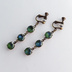 チェコガラスのイヤリング/ピアス(グリーンムーンドラゴンズブレス3連)