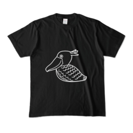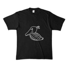 カラーTシャツ - XL - ブラック (濃色)この商品はpixivFACTORYで作られた商品です。サンプル画像は完成イメージのため、実物と異なる場合があります。 【商品説明】 あまり動かないハシビロコウさん。 Tシャツになってしまいましたが、やはり動きません。カエルなら話が違っていたかもしれませんが・・・ 当アトリエの看板キャラのハシビロコウさんをカラーTシャツにしてみました。家であまり動かないのもよし、アクティブに外を駆け回るもよし。 これでいつでもハシビロコウさんと一緒ですね。
