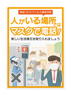 新型コロナウイルス感染予防ポスター「人がいる場所ではマスクで電話!」