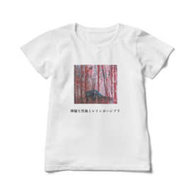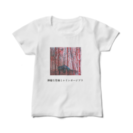 レディースTシャツ 白 神秘な竹林とレインボージブラ