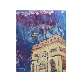 この商品はpixivFACTORYで作られた商品です。サンプル画像は完成イメージのため、実物と異なる場合があります 商品名 凱旋門にそびえ立つレインボージブラ 油絵とアクリルの複製画 キャンバス F3 世界中を旅するレインボージブラ 星きらら 熊本アーティスト 主に動物を描く
