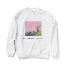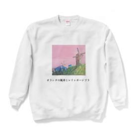オランダの風車とレインボージブラ スウェット ホワイト