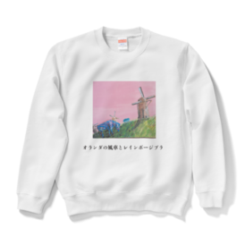 この商品はpixivFACTORYで作られた商品です。サンプル画像は完成イメージのため、実物と異なる場合があります 商品名 オランダの風車とレインボージブラ スウェット ホワイト 世界中を旅するレインボージブラ ほしキララ 熊本アーティスト