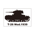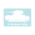 戦車ステッカー 旧ソ連の軽戦車T-26。側面シルエットをステッカーにしました。 画像で白または水色に見える部分は台紙です。ロゴやイラスト部分のみを貼り付けるタイプのカッティングステッカーです。 塩化ビニール製の丈夫な素材なので、ウォールステッカーにしたりスーツケースや家電製品に貼ったりしてご活用ください。 屋外使用可能な素材を使っています。車のボディやスノーボード、バイクに貼るのもおすすめ。 T-26はソ連で開発された軽戦車。1931年にイギリスのヴィッカース社とライセンス契約を結び、ヴィッカース6トン戦車をもとに生産を開始。その後数度の改良が重ねられている。今回制作したのは1939年型。側面が傾斜した新型の「円錐型砲塔」タイプ砲塔となり、車体側面も傾斜装甲になっている。 絵柄のサイズ(文字含む)は幅130×高さ81mm。表面にリタックシート(転写シート)を貼った状態で送ります。 【色】 つやあり黒・つやあり白。ご希望の色を選んでください。 【素材】 塩化ビニール製シート(屋外用 耐候性3年程度) 表面がなめらかな面には貼れますが、砂壁や土壁などのザラザラした面や布製品には貼れません。 【サイズ】 幅139×高さ90mm 【購入の際の注意点】 写真と実物では多少色味が異なる場合があります。 市販のカッティングマシンを使ってカットし、手作業でリタックシートを貼っているので、ステッカーとリタックシートの間に気泡が入っている場合などがあります。製品の品質には影響しませんので、あらかじめご了承ください。
