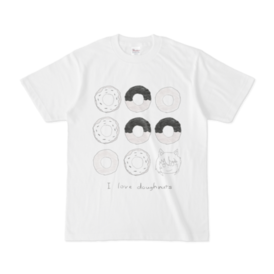 Tシャツ01「I love doughnuts」白 (T-SHIRT no.1 "I love doughnuts" White)