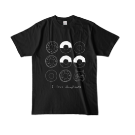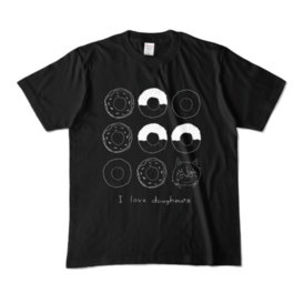 Tシャツ01「I love doughnuts」黒 (T-SHIRT no.1 "I love doughnuts" Black)