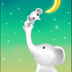 サバンナの澄みきった夜空には、今夜もぽっかりお月さま。子象はお父さん象に高〜く上げてもらって、月を捕まえようとしています。子象には三日月お月さまが、美味しそうなバナナに見えているのかも知れませんね。