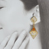細かく模様をいれたエスニックなイヤリング(ピアス)です。 模様は気分によって毎回かわります。 サイズ/約6センチ 重さ/二つで12グラム 使用素材/合金(黄銅)、サージカルステンレス、アクリル等 ※イヤリングへの金具変更をご希望の方は必ずメッセージに記入をお願いいたします。変更無料。 ご連絡が無い場合は全てピアス仕上げでのお届けになります。 ※お使いの端末や閲覧環境により、写真と実物の色味や質感が多少異なって見えることがございます。 また、1つずつ手作りのレジンパーツや、マーブル模様のビーズなどは、1つずつ模様が異なりますことをご容赦ください。 ※金属アレルギー対応商品ではありません。アレルギーが心配な方はご注文をお控えください。 ※ 個人使用を目的とした範囲でのみ購入が可能です。第三者への転売を目的としたご購入はお断りいたします。
