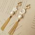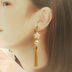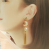 パールを閉じこめた、星と月のアシンメトリーイヤリングです。 長めのチェーンとコットンパールが、上品に魅せてくれます。 ____________________ 全体*9cm 材質*チェーン:金メッキ パール:コットンパール 星、月:レジン イヤリング:金メッキ