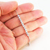 シルバー925のチェーンに上質なキュービックジルコニアを組み合わせたブレスレットです テニスブレスのようにキュービックジルコニアを贅沢に配することで、繊細でありながらもしっかりと光り輝かせるブレスレットに仕上がっています 長さを調節できるようにアジャスターを用意してあります 「シルバー925」 一般的にシルバーと呼ばれるアクセサリーで使われている素材をさします シルバーの後に続く925という数字は銀の含有率(純度)のことを意味し、92.5%のシルバーが含まれていることを表します 銅などの金属を混ぜて銅と銀の合金にします なぜこの含有率かというと、銀の性質上100%で作ると柔らかくてアクセサリーには少し不向きだからで、そのため強度を保つために他金属を混ぜているのです 「キュービックジルコニア」 屈折率がダイヤモンドに近く、硬度もコランダムほどあるいわゆる人工石です 一般の方ではダイヤモンドとの差が非常にわかりにくいほど精巧です 「材 質」 シルバー925 スターリングシルバー キュービックジルコニア 「サイズ」 チェーン長さ:約19cm(内 約3cmはアジャスター部) キュービックジルコニア:約2mm四方 重量:約2.44グラム 【ご注意】 ※ご使用のモニターの色の違いにより、実際の商品と色味が若干異なる場合がございます NA-BR14