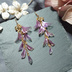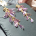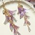 ディップアートとレジンを使用して藤の花を表現しました。 角度や光の加減で偏光がみられますので、ぜひいろいろな角度からおたのしみください。 こちらは受注販売となりますので、注文をお受けしてからの制作となります。発送は入金確認後1週間程度お時間をいただくこととなりますので、ご了承ください。 金具はフックタイプピアス・ネジばね式イヤリングへの変更が可能です。 ご希望の方は購入後24時間以内にメッセージよりご希望の金具をお申し付けください。 -サイズ詳細- 飾り部分:6㎝ 重量:5g(フックタイプピアスの場合) -注意事項- ・猫のいる環境で制作しております。 ・金属、レジンを使用しております。アレルギーをお持ちの方はご購入をご遠慮ください。 ・お使いのモニターにより作品の色味が若干異なって見える場合があります。 ・着脱時は金具部分を持ち、お花部分を引っ張らないようご注意ください。 ・ハンドメイドの作品ですので、細かい気泡や色むらなどがあります。ご了承ください。 発送方法はあんしんBOOTHパック(ネコポス)の設定になっています。 定形外郵便(120円)での発送も可能なため、発送方法の変更をご希望の方は一度メッセージでご相談ください。※その場合発送時の補償は無く発送中の破損に関しても責任を負いかねますので、不安のある方は宅急便での発送をお選びください。