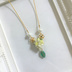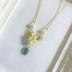 ご覧いただきましてありがとうございます。 樹脂粘土製のパーツ、シェルパール、チェコビーズを使用したネックレスです。 水仙のブーケの下に葉っぱ形のチェコビーズを合わせてシンプルに仕上げました。 チェーンに組み込まれた白いシェルパールがとても綺麗ですよ! こちらのネックレスはサフィックス社のスウェットバリアを使用しての金属アレルギー対応も可能です。 ご希望の方は右のメニューより「金属アレルギー対策有」の項目を選んでください。 おそろいのピアス・イヤリングも販売しております。 よろしければそちらもご覧ください。 https://sakurablossoms.booth.pm/items/2901146 ※注意※ ☆お花のパーツは樹脂粘土でできています。強い力や水濡れに弱いので、充分ご注意くださいませ。 ☆定形外郵便でのお届けのみとなります。 【Size】 チェーン:40~45cm(アジャスター:5cm) ・シェルパール:6mm ネックレストップ: ・ブーケ:約2cm×1.7cm ・チェコビーズ(リーフ):1.2cm×7mm