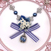 ご覧いただきましてありがとうございます。 樹脂粘土製のパーツ、水晶、ブルーアゲート、パールビーズ、かごチャーム、リボンを使用したネックレスです。 かごチャームの中に4mmのブルーアゲートが2個入っています。 チェーン部分にはブルーベリーのような色合いのパールビーズと水晶を組み込んでいます。 ネックレストップが大きめなので、首元を華やかに飾ってくれますよ! 大きめに結んだチェック柄のリボンがポイントです。 このネックレスのデザインはこれまでに出展してきたイベントでも好評でした♡ こちらのネックレスはサフィックス社のスウェットバリアを使用しての金属アレルギー対応も可能です。 ご希望の方は右のメニューより「金属アレルギー対策有」の項目を選んでください。 ※注意※ ☆お花のパーツは樹脂粘土でできています。強い力や水濡れに弱いので、充分ご注意くださいませ。 ☆定形外郵便でのお届けのみとなります。 【Size】 チェーン:45~50cm(アジャスター:5cm) ・パールビーズ、水晶:6mm ・コネクター:8mm ネックレストップ: ・ブーケ:約2.1cm×2.2cm ・ブルーアゲート:4mm ・かごチャーム:1.1cm×1.1cm
