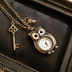 懐中時計 バッグチャーム キーホルダー フクロウ アンティーク調 レトロ 鍵付き