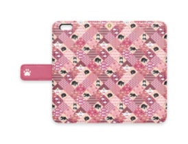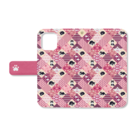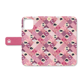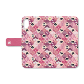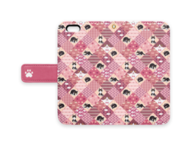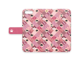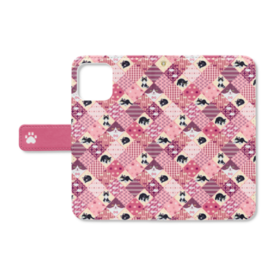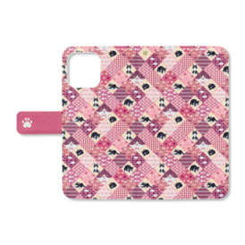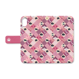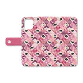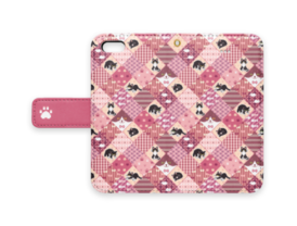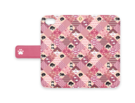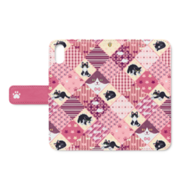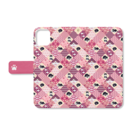 ぽちねこパッチワーク【手帳型iPhoneケース ベルト付き (ピンク) 】