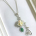 ご覧いただきましてありがとうございます。 樹脂粘土製のパーツ、チェコビーズ、パールビーズ、パール入りチャームを使用したネックレスです。 チャームの着脱が可能なので、お洋服やシーンによってスタイルを変えられます。 ネックレストップをブーケのみにすればシンプルに、パールビーズの付いたチェーンチャームも一緒に付けると華やかなデザインになります。 こちらのネックレスはサフィックス社のスウェットバリアを使用しての金属アレルギー対応も可能です。 ご希望の方は右のメニューより「金属アレルギー対策有」の項目を選んでください。 お揃いのピアス・イヤリングもございますので、よろしければそちらもご覧ください。 https://sakurablossoms.booth.pm/items/2933706 ※注意※ ☆お花のパーツは樹脂粘土でできています。強い力や水濡れに弱いので、充分ご注意くださいませ。 ☆定形外郵便でのお届けのみとなります。 【Size】 チェーン:40~45cm(アジャスター:5cm) ネックレストップ: ・ブーケ:約1.7cm×1.7cm ・チェコビーズ(リーフ):1.2cm×7mm ・パールビーズ:3mm ・パール入りチャーム:1.6cm×6mm