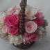 お花がたくさん入った花かごをイメージして作成しました。 プリザーブドフラワーをふんだんに使用したアレンジメントです。 ピンクを中心にやさしく華やかな仕上がりです。 贈り物にもおすすめです。 高さ 持ち手を含めた底からの高さ:約18㎝ 持ち手を含めず底からの高さ:約15.5㎝ 横幅:約15.5㎝ プリザーブドフラワーについて プリザーブドフラワーは生花に特殊な加工を施し花本来の風合い、みずみずしい感触を楽しむために誕生しました。 お部屋のインテリアや、お祝い、お礼のプレゼントなど様々なご用途でお楽しみいただけます。 管理方法 ・水やりは必要ありません ・繊細なつくりで、生花を使用しています。取り扱いにご注意ください ・お子様やペットのお口に入らないよう管理してください ・直射日光、高温多湿を避けてください。色褪せなどの劣化につながります ・特殊な加工、着色をしております。衣類、床、壁など色うつりする場合がありますので管理場所にお気を付けください