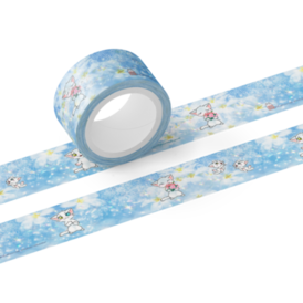 - マスキングテープ20mm-水色と白い花と白猫(テープ幅 20mm)2025-11-07