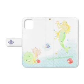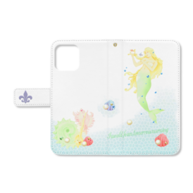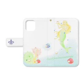 手帳型iPhoneケース - iPhone12 mini - ストラップ穴 ありオリジナルの人魚姫のイラストをデザインしたiPhone手帳型カバーです。 透明感のある印象に仕上げました。 この商品はpixivFACTORYで作られた商品です。サンプル画像は完成イメージのため、実物と異なる場合があります。
