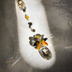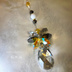 《頒布終了いたしました》 小狐丸極イメージサンキャッチャー(ミディアムサイズ) メインはペアシェイプタイプの少しシルバーかかった色味のスワロフスキーパーツ。 小狐丸のイメージカラーとしては黄色や山吹のような色だとは思いますが、中に着ている着物と袴の色をイメージして選びました。 そして特衣装よりも少し彩度高めになった衣装のお色味を表現するのに、いくつかスワロフスキーの特色カラーも使用してみました。 真っ白の少し大きめのスワロフスキーパーツは衣装の白とあのモフモフのイメージから。 サンキャッチャーとしては真っ白のパーツは光の反射などもないのですが、この白はお入れしておきたいなと。 金色の中間パーツは、どことなく垂れる稲穂をイメージして、そこから下がる雫形のガラスパーツもメインのペアシェイプと同じ色を使用しています。 上部の赤と大きめの丸いビーズですが、赤いビーズは小狐丸の目のイメージ、間はメインのものと同じ色で髪色をイメージしております。 小狐丸極のイメージだなと思っていただけたら幸いです。 ============================================ 材質 スワロフスキー(クリスタルガラス)、チェコビーズ 金属(丸鐶、中間パーツ、つぶし玉、カニカン) 全長 約24センチ ============================================ 小狐丸イメージサンキャッチャーを作ろうと思ったのは実を言えば一昨年でした。 いえ、その前に友人にいつかつくってみて、と言われて頭の片隅にはあって。 それがミュージカル刀剣乱舞の「つはものどもがゆめのあと」を観たあとから北園くんの演じる小狐丸がすごくよくて、そこから一気に好きになりまして。 そしてこの度、とうとう小狐丸が極になると。 ちょっと自分でもびっくりするくらい動揺するほど好きになってたんだなあ、なんて、ドキドキしながら修行に出しました。 戻ってきた姿をみて、なんて眩しいのかと。 いてもたってもいられずに、極イメージのサンキャッチャーを作りました。 <サンキャッチャーとは・・・・・・> 窓辺や陽射しの入る場所などに吊るすことで、ガラスパーツが乱反射し、室内にうまれる虹色のキラキラとした光を楽しむインテリアアイテム。 太陽光だけでなく、室内であってもスポット光や、間接照明などでもその光を楽しむことができます。 <ご注意> シャンデリアパーツとして作られているスワロフスキーのクリスタルガラスをメインに使用しております。 シャンデリア用パーツの為、細かな傷などが元から付いている場合がございますことをご了承ください。 ガラス製品ですので、ぶつけたり、落下などの衝撃でパーツが欠けてしまったり、割れてしまう可能性もございます。 お取り扱いにはご注意ください。 室内、屋内でのみのご使用をお願いしております。 お車での使用は思わぬ事故にも繋がりかねませんので、ご遠慮ください。 飾っている間に埃が付いてしまった場合は、柔らかい布や、眼鏡拭きなどで優しく拭いてください。 商品到着後、開封時に破損などがございましたらBOOTHよりご連絡ください。 修理もしくは交換にてご対応させていただきます。 それ以外でのご返品、返金、交換、パーツ変更などはお受け出来ません。 <配送について> あんしんBOOTHパックを利用しての匿名配送となりますが、 配送方法は「宅急便コンパクト」のみとさせていただきます。 配送は日本国内のみとなっております。 ご入金確認後、7営業日以内に発送させていただきます。