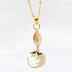 丸くなってる可愛い猫モチーフと大きめスワロフスキー(ゴールドシャドー)のネックレス ゴールドカラー