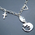 まるで寝ているかのような丸くなっている姿の猫のシルエットモチーフに、クリアカラーの大きめスワロフスキーを加えたブレスレットです 可愛さだけでなくしっかりと猫好きもアピールできるように仕上げています 程よい大きさの猫モチーフにキラリと光るスワロフスキーは見るものを惹きつけます チェーンには小さなハートとロザリオをプラスして、繊細さとともに華やかさを演出しています フォーマルにもレジャーにもシーンを選ばずにご利用いただけます 猫を手首につけてお出掛してください ※オプションにて約5cmのアジャスター(シルバーカラー)を追加できます ※素材のモチーフは真鍮にメッキ、チェーンは鉄製にメッキ、金具などは真鍮製です 金属アレルギーの方はご注意ください 「材質」 真鍮・メッキ:モチーフ スワロフスキー 鉄・真鍮:チェーン、金具など 「大きさ」 猫:直径約14mm スワロフスキー:約12mm×8mm チェーンの長さ:約19cm(アジャスター約5cmを追加できます) 「重量」 約3.1グラム ※ご使用のモニターの色の違いにより、実際の商品と色味が若干異なる場合がございます。予めご了承ください NN-BR14