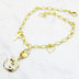 丸くなってる可愛い猫モチーフと大きめスワロスフキー(ゴールドシャドー)のブレスレット ゴールドカラー
