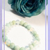 ご覧いただきありがとうございます。 天然石 アクアマリン(7mm)使用(淡いグリーンのもの) 間にある石は人工石のホワイトオパール(8mm) 長さは17~18センチ程度(若干誤差あり)で、オペロンゴム使用なので伸縮性があります。ゴムなのですぐ腕に付けておでかけできます。 汗や水濡れなどに気を付けてください。繊細なものですので優しく取り扱ってください。無理に伸ばしすぎると千切れる可能性があります。 お使いのブラウザによって色の見え方が若干異なる場合があります。 個人で作成したものです。粗が目立つかもしれませんが気になる方はご購入をお控えください。 撮影用小物は付属致しません。 発送はスマートレターにて、簡易包装でお送りさせていただきます。 郵便事故は責任を負えませんので予めご了承ください。